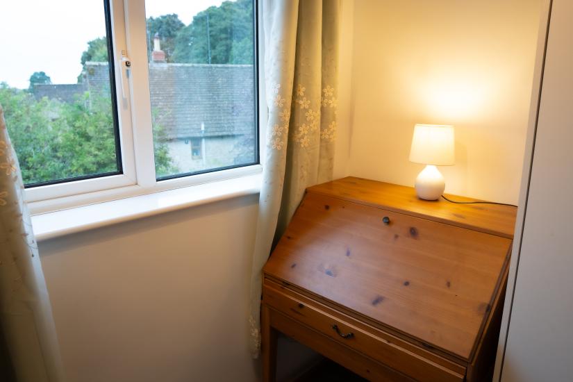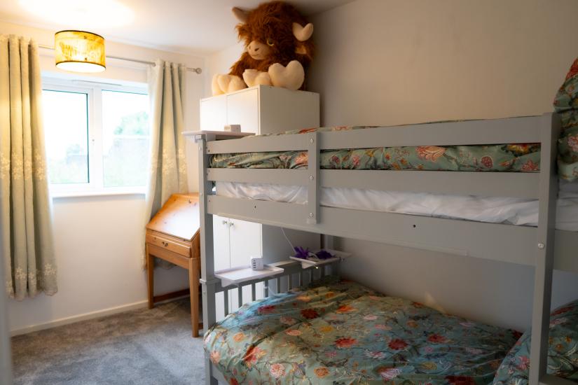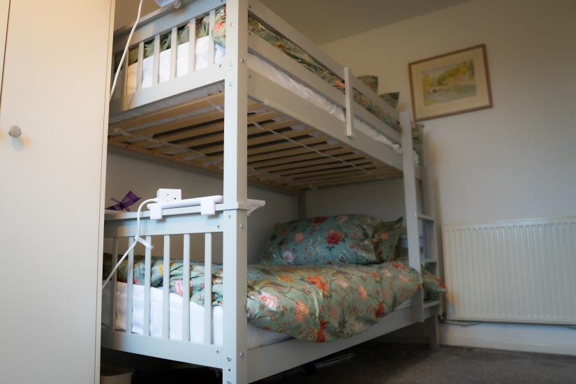 Single bedroom – furnished, adult bunk- bed with wardrobe, and work desk ideal for a base during the working week.