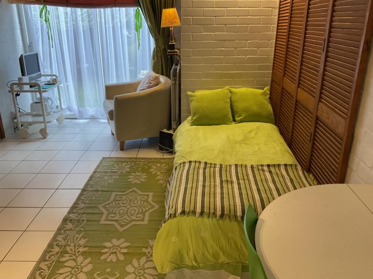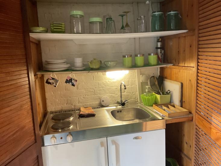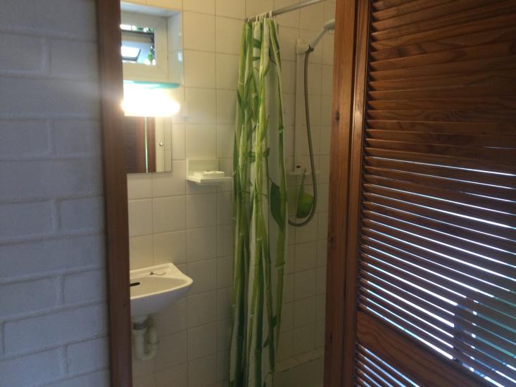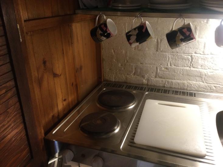 It consists of a living/sleeping area, a separate bathroom with shower, toilet and washhand basin and a” cupboard kitchenette” with sink, fridge and 2 built in electric hobs.