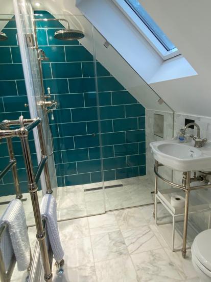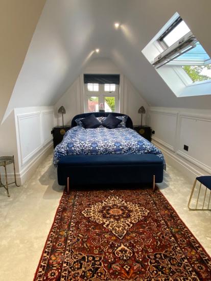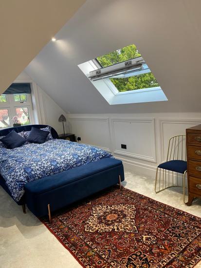 Beautifully furnished large double room (5.6 x 2.7m) with king size bed and ensuite shower room (shower, toilet & sink) available on top floor of six bedroom detached house in South Woking.