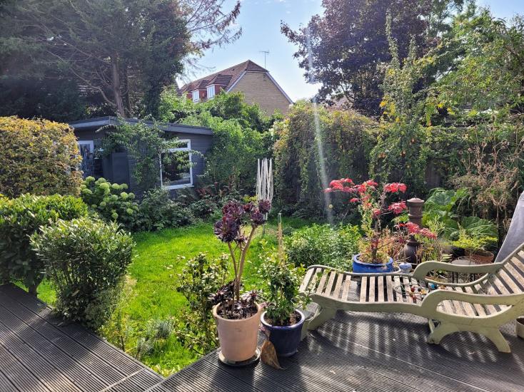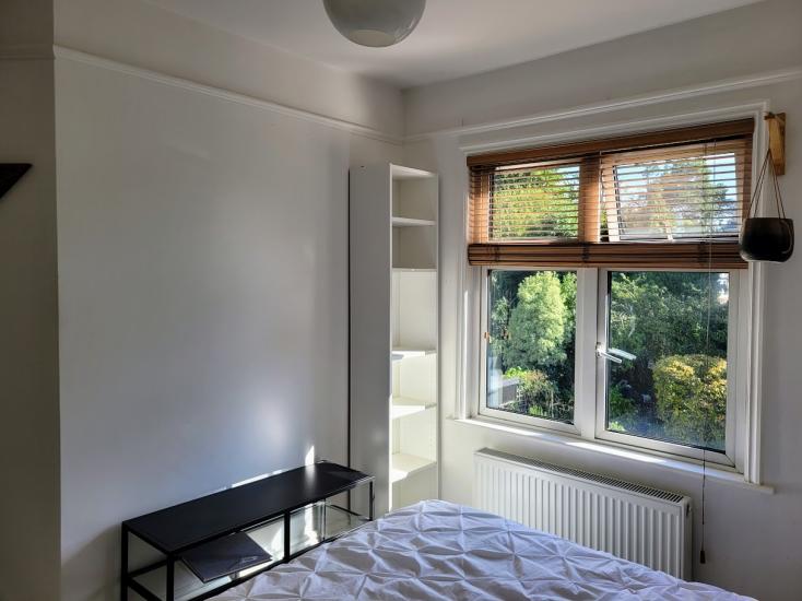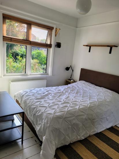 Beautifully furnished double room with primary use of the bathroom in a welcoming family home. Access to a fully equipped kitchen, dining room, large south-facing garden, and driveway parking.