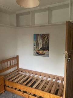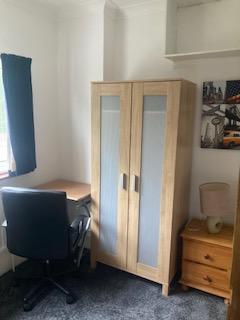 The available room is on the first floor with a shared bathroom also located on the first floor. A single bed and wardrobe for clothing is provided plus a small desk and chair for work/studying. There is also above the head shelves for storage and the view from the room looks out on to the garden.
