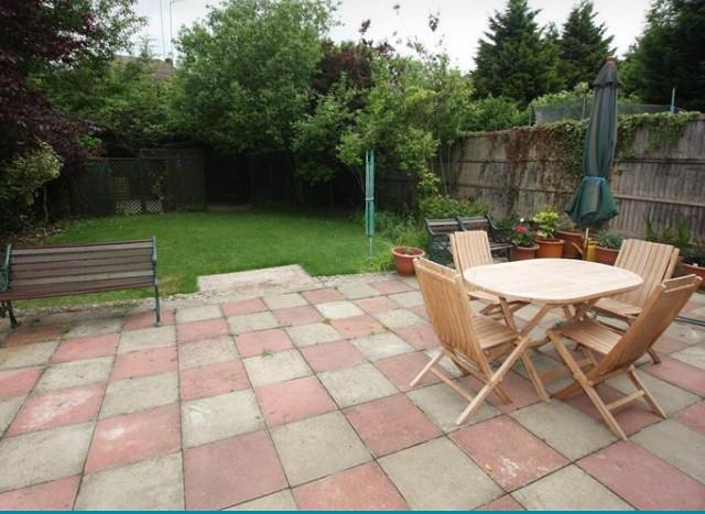 Fully accessible garden with side entrance, patio and grass area.