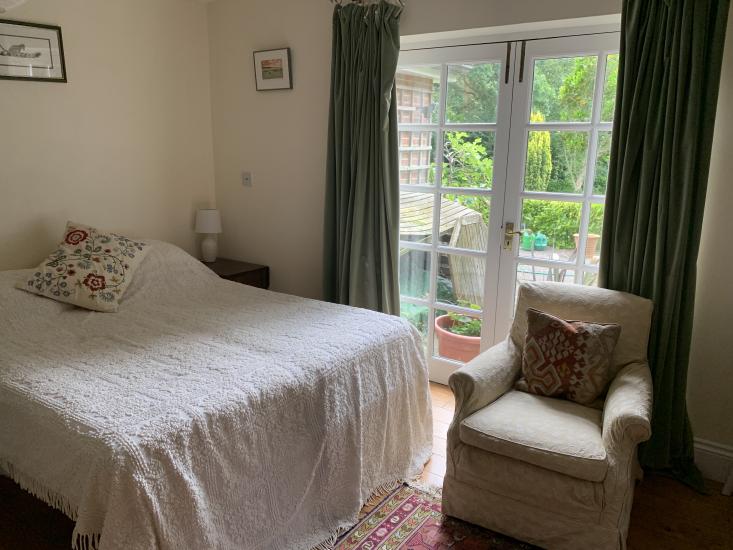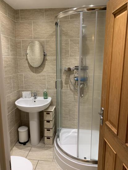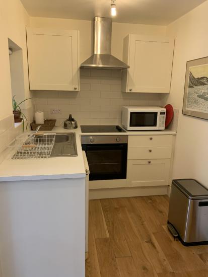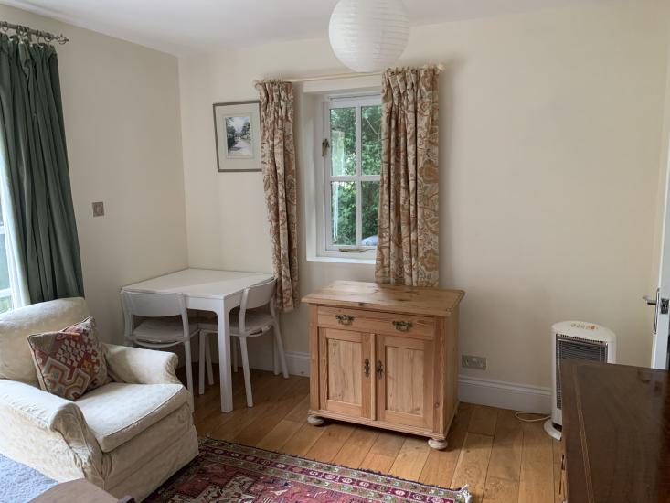 Small self-contained annexe, attached to the main house, with own entrance from side of main house. Entrance hall, one main bed-sitting room (double bed) with table for eating/ working, own shower room and kitchen, entrance hall space. There is a small patio area. Use of EV charging point by arrangement. There is no TV. Parking in drive. Wifi.