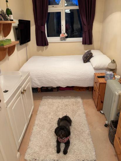 There are some shops just opposite, such as convenience store, pharmacy and news agent. There are many green areas nearby and the neighbourhood is very friendly. It is only 10 minutes walking to Ham Gate to Richmond Park.