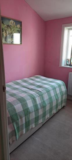 Zone 2 South. Small comfortable room with good daylight and storage. Next to bathroom. Spacious house with large kitchen and sitting room and flagstone yard outside space. Close to lots of green space. Very quiet with good transport links and free on street parking. Share with one other. Local strip of bars restaurants and local shops across the common. 5 local stations.
